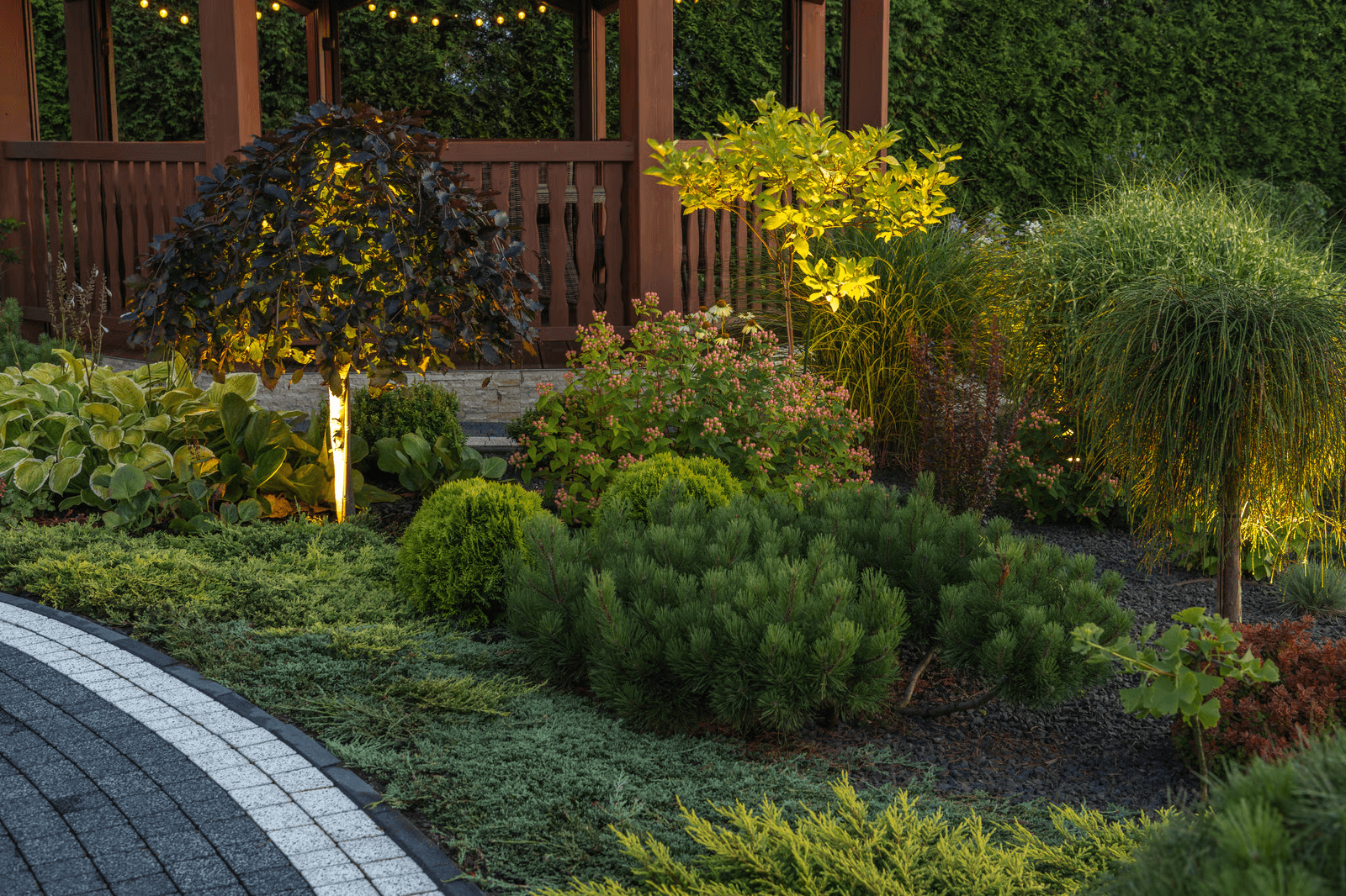 Les couleurs sont douces, les formes arrondies, l’éclairage indirect. Ce type de jardin invite à ralentir, méditer, lire ou simplement respirer.